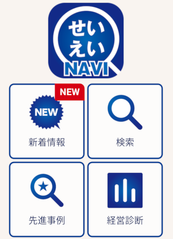 「せいえいNAVI」はお持ちのスマートフォンやタブレットで、補助金や助成金など生活衛生関係営業者にとって有益な各種情報を入手検索・受取できる、簡単で便利なアプリです。