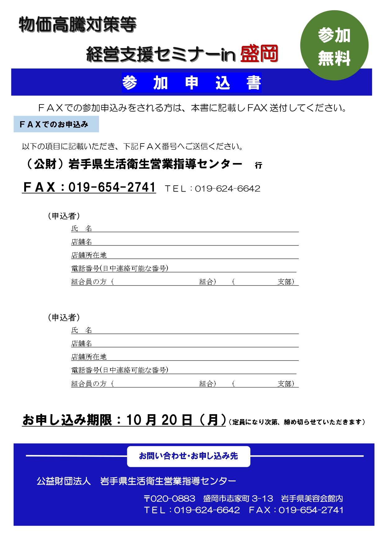 岩手県美容会館2F | 6月3日 (月) |
