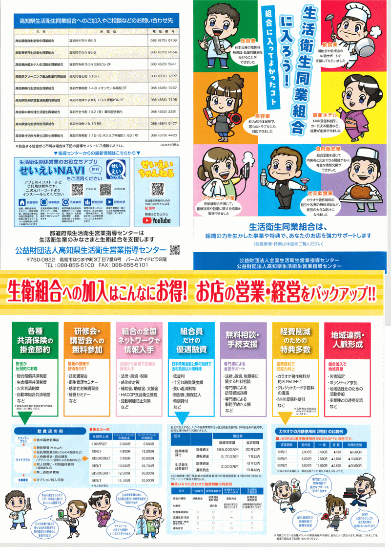 これらの取組みと連携協力して、高知県生活衛生営業指導センターでは、生衛業の衛生水準の確保・向上や経営の維持健全化を図るための事業を実施しています。