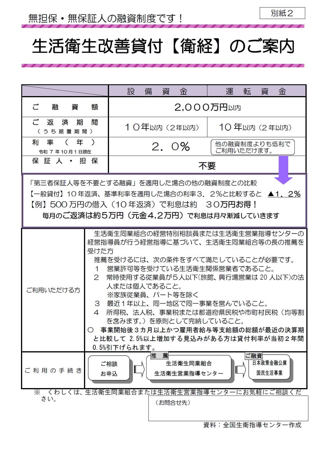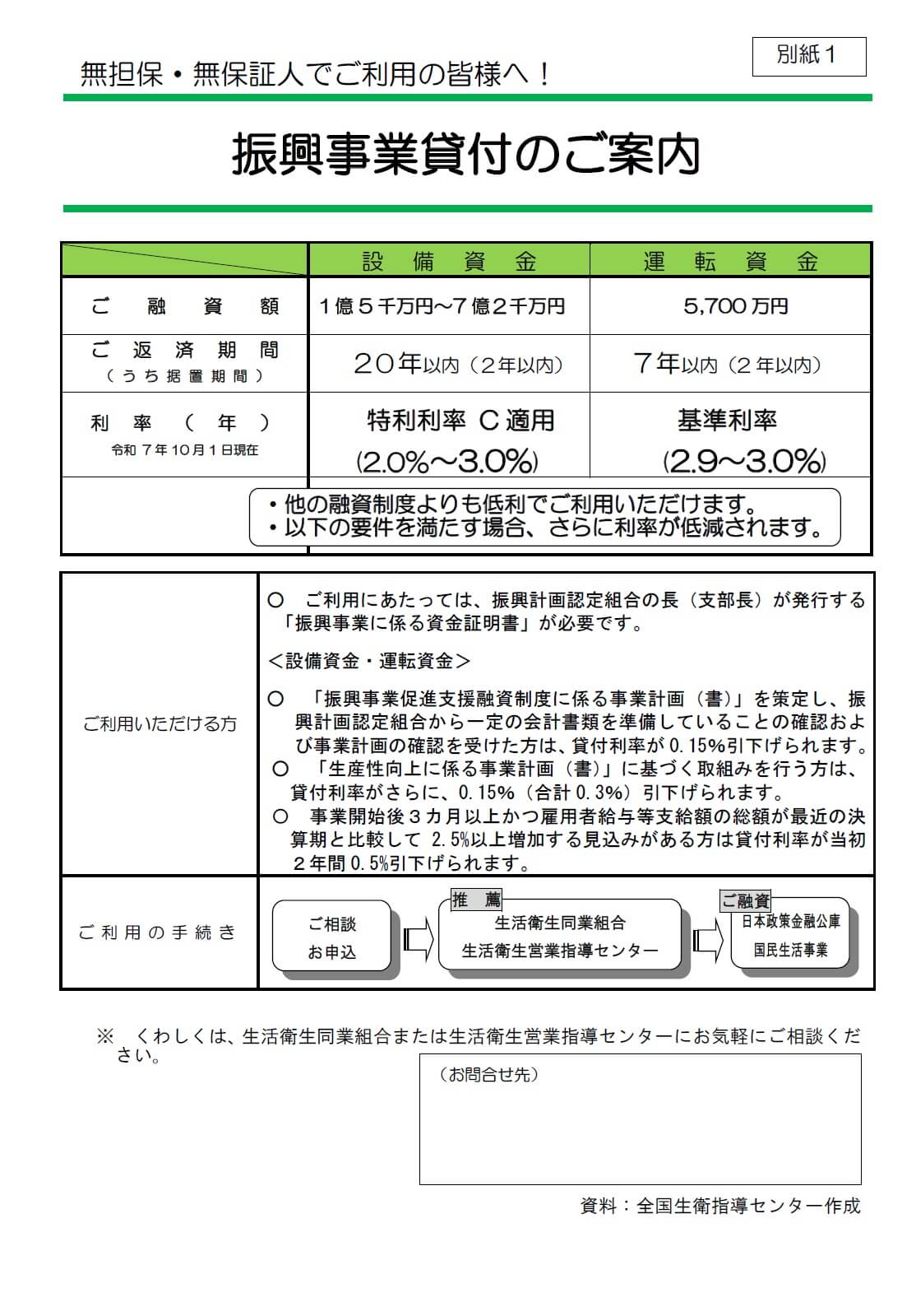 10月金利反映版振興事業、衛経融資チラシ、金利支払い総額早見表送付(情報提供) 2025年9月30日 ピックアップ, ブログ, 新着情報 前後の記事 前の記事 事業承継啓発イベント「スタートアップの手法、イノベーションの源泉としての事業承継」のご案内 次の記事 日本政策金融公庫 利率改定